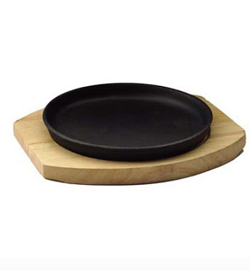 Сковорода 24см чугун/дерево на подставке овальная