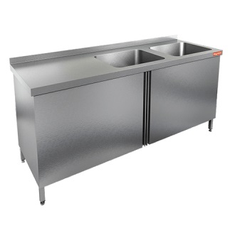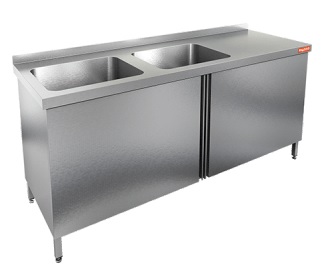 Стол с распашными дверцами и моечными ваннами 2-х секц. НСЗ2М-18/6БП 1800х600х850мм Hicold