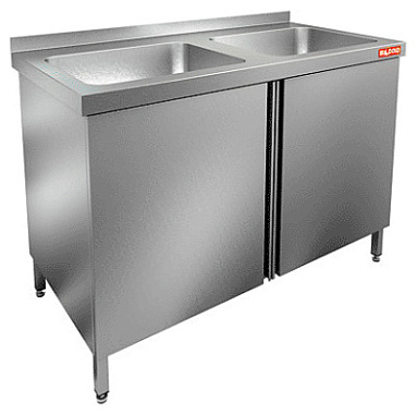 Стол с распашными дверцами и моечными ваннами 2-х секц. НСЗ2М-13/7Б 1300х700х850мм Hicold